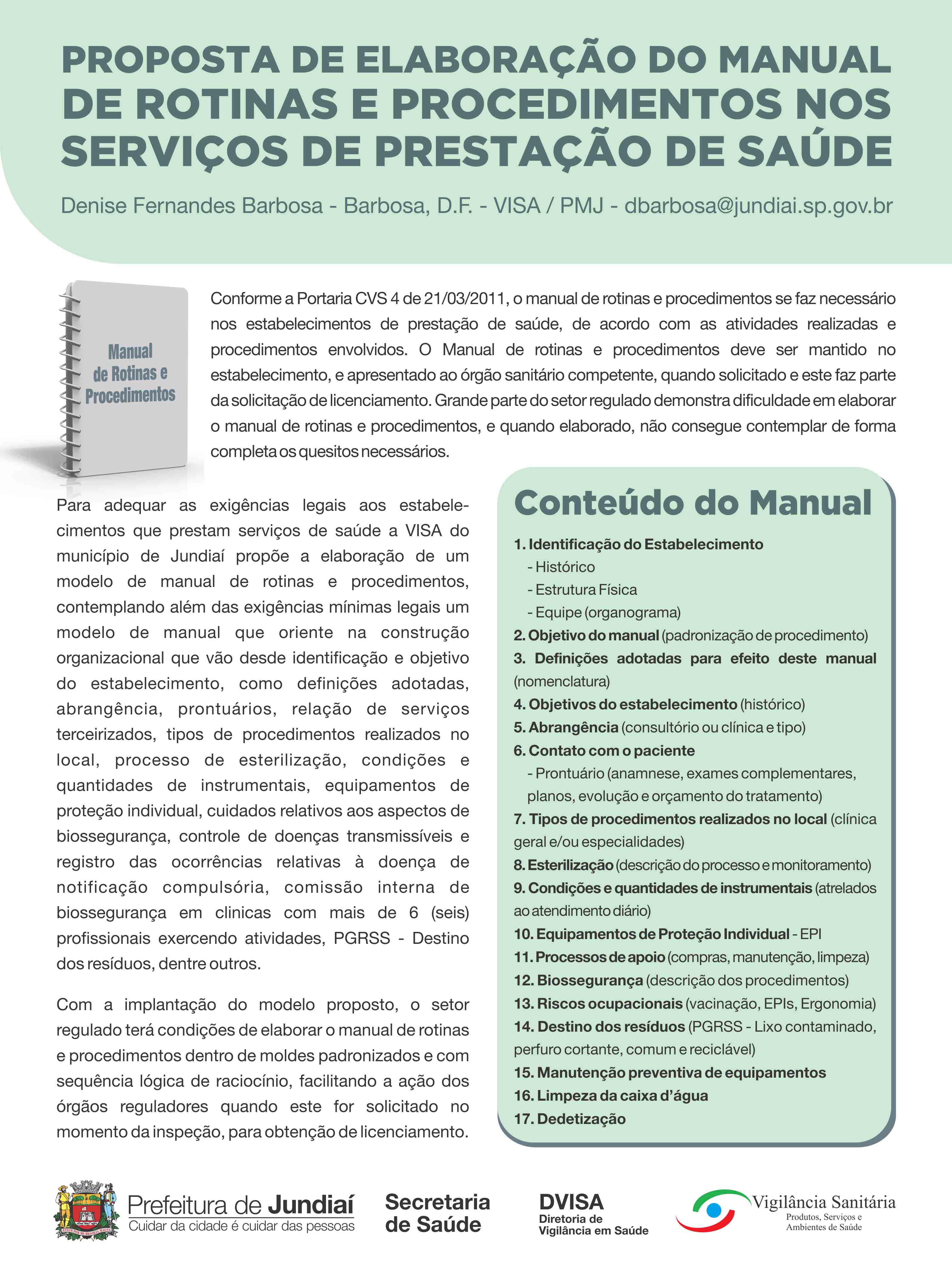 Proposta de elaboração do manual de rotinas e procedimentos nos serviços de prestação de saúde